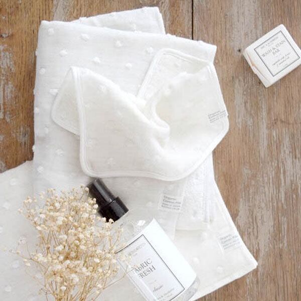 オーガニックコットンの無撚糸をパイルに使用したタオル生地のハンカチ&スタイのオーガニックコットンは、化学薬品不使用で環境にやさしいだけでなく、 綿本来の柔らかさを実感できる素材です。 繊維に弾力性があり、お洗濯を繰り返してもふんわりとした柔らかさが持続し、赤ちゃんに安心してお使いいただけます。