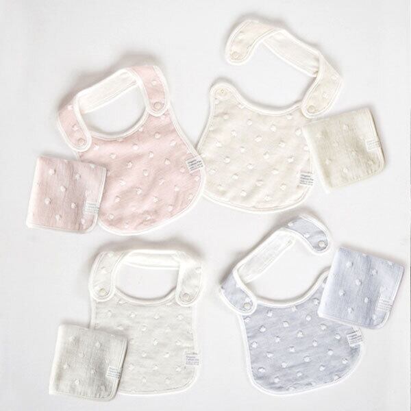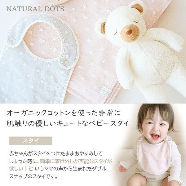 小ぶりなドット柄のオーガニックコットン「タオルハンカチ&スタイ」を入れて、