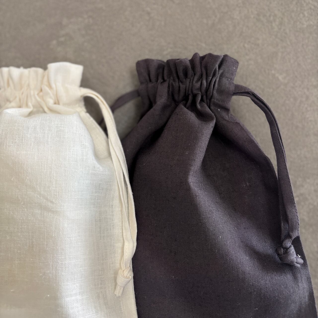 やさしい風合いのコットンリネン素材巾着バッグの中には、
