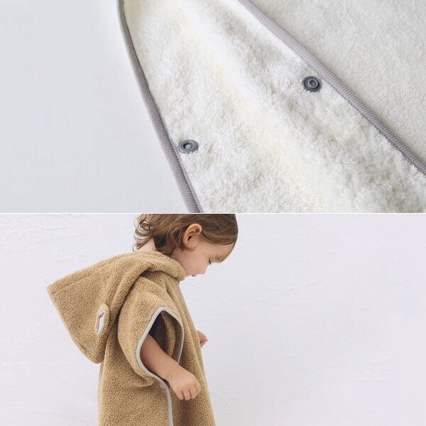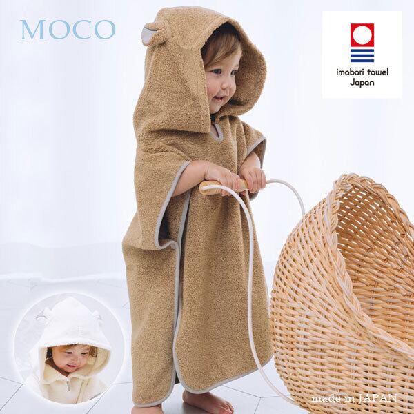 MOCOではこれまでのフード付バスタオルとは少し形を変え、ポンチョ型にして登場です。