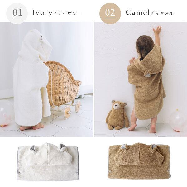 さっと羽織らせるだけでお子さまを湯冷めから守ってくれるので、 一度使ったら手放せなくなったという先輩パパ・ママもたくさんいらっしゃいます。
