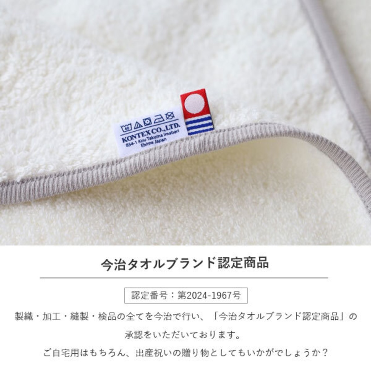 製織・加工・縫製・検品の全てを今治で行い、「今治タオルブランド認定商品」の承認をいただいております。