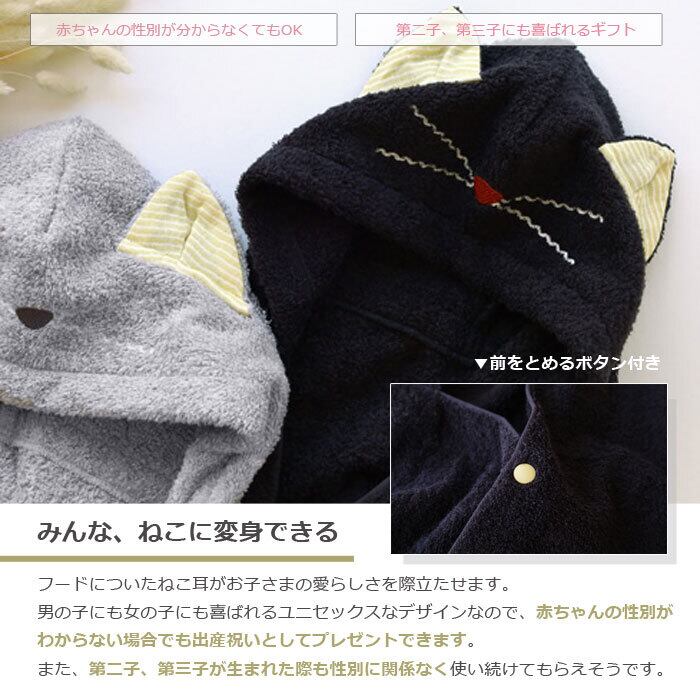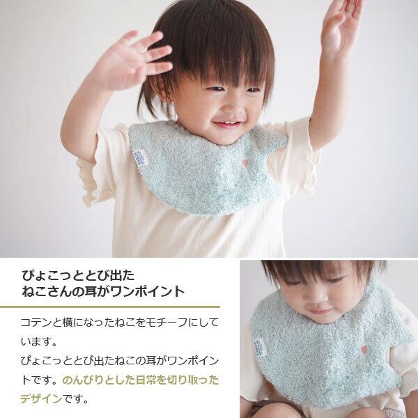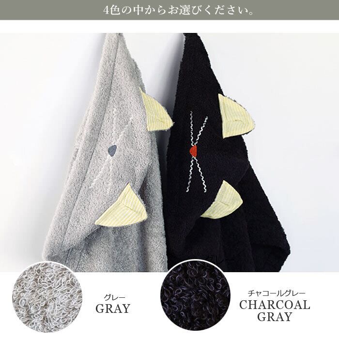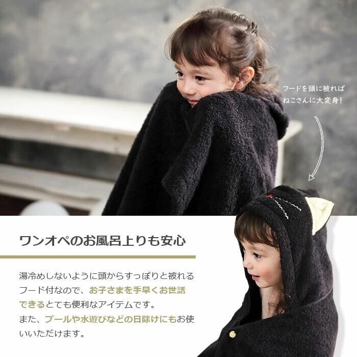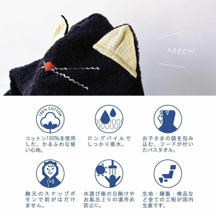 フードをかぶれば、ねこさんに変身できるフード付バスタオル&スタイ。