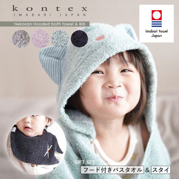 【ねこさん フード付きバスタオル&スタイ ギフトセット】
