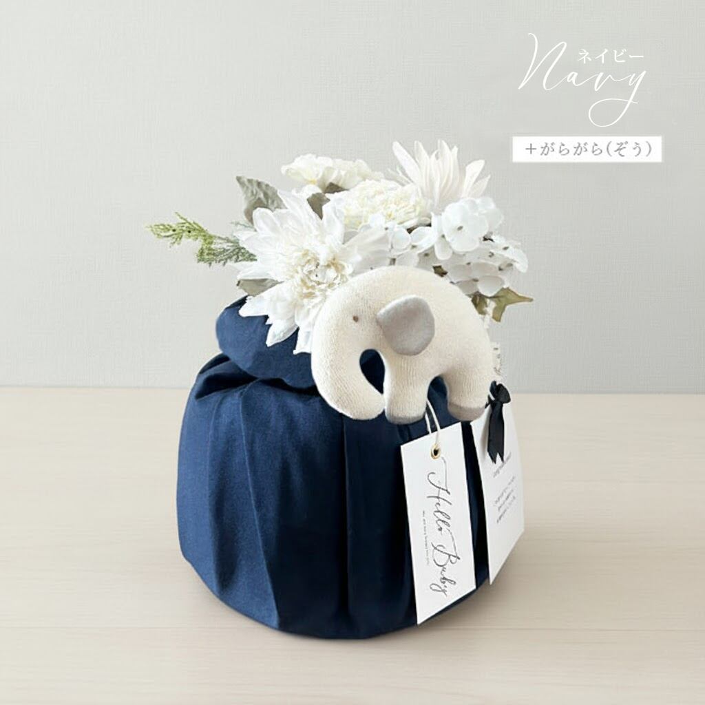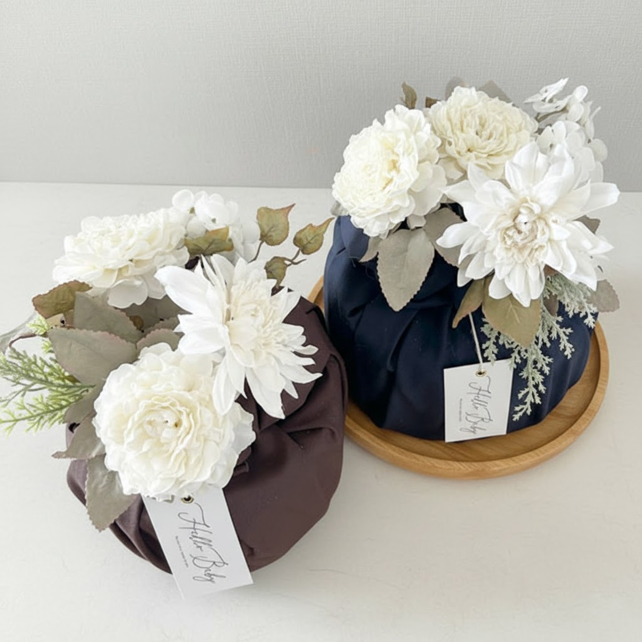 高品質なアーティフィシャルフラワーでお作りしたおむつケーキ。